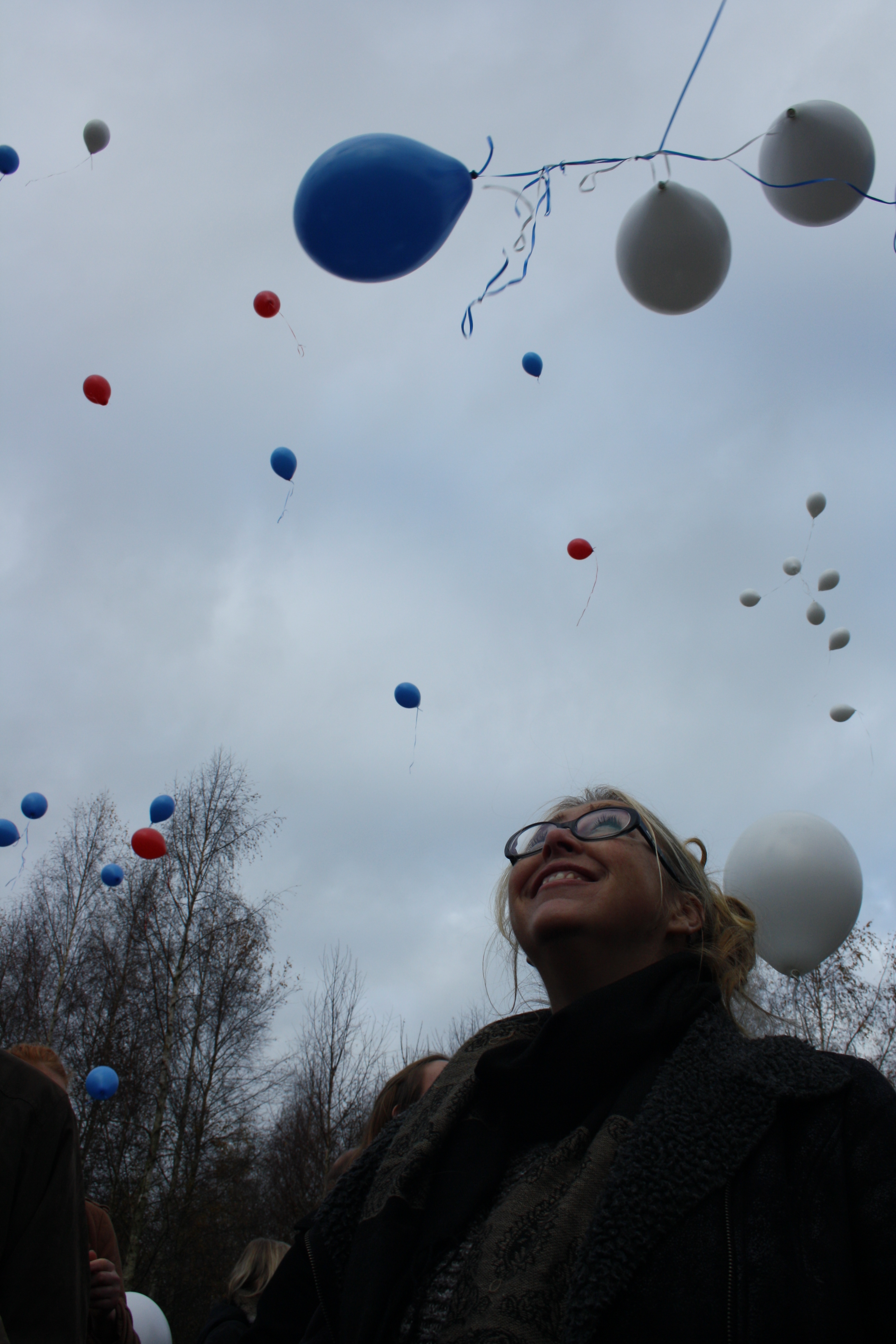 Een sobere maar indrukwekkende plechtigheid ging vooraf aan het loslaten van ballonnen en het planten van een boom. In het Wilhelminabos wordt sinds 2000 ieder jaar een groot aantal bomen geplant voor familieleden en vrienden die gestorven zijn aan kanker.